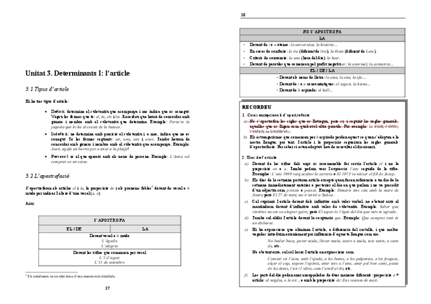 Valencià - Determinants i Articles