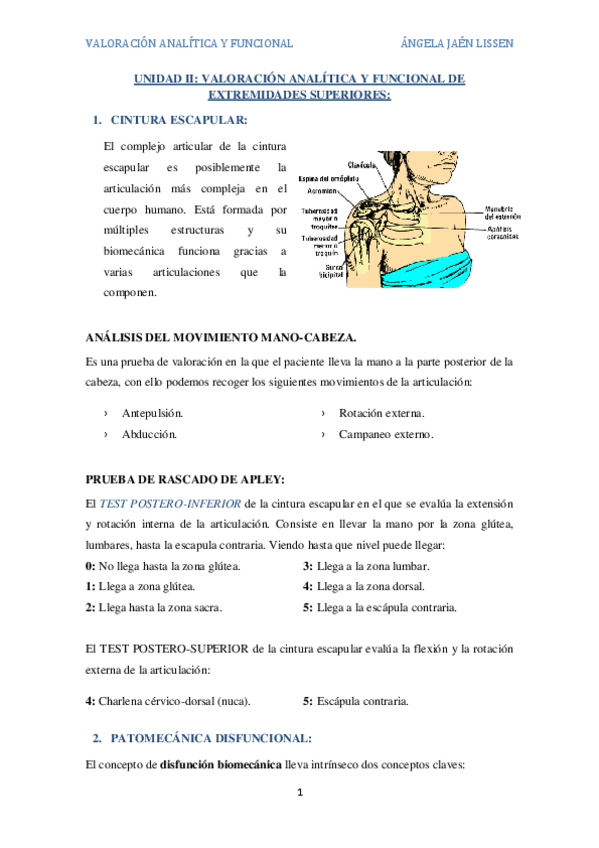 He publicado nuevos apuntes de 2º Valoración Analítica y Funcional en Fisioterapia: Valoración-unidad-II. Cintura escapular..pdf