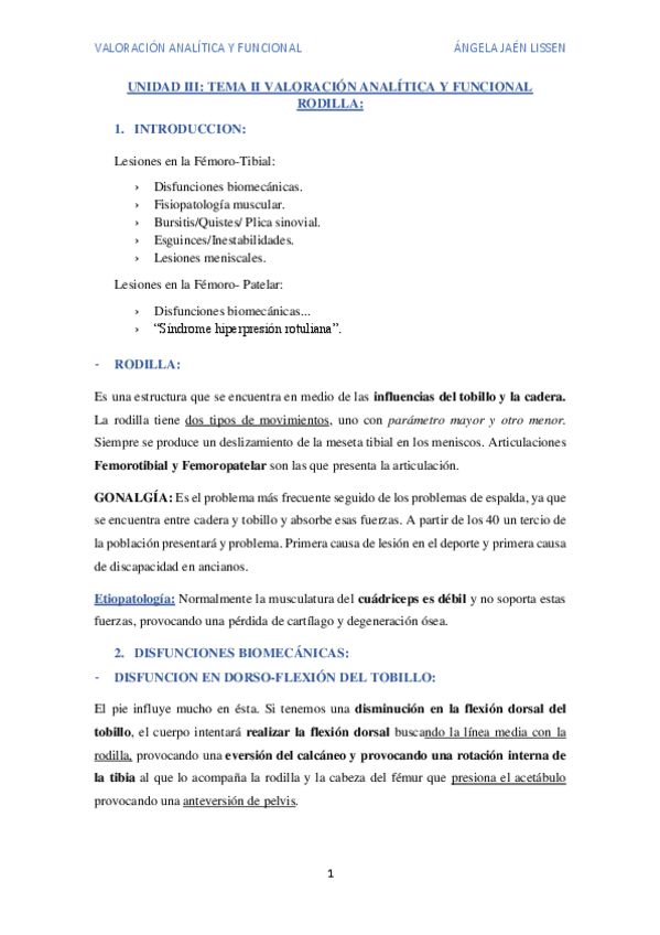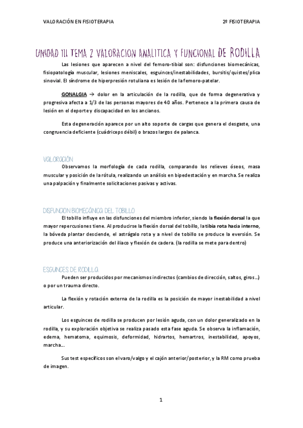 He publicado nuevos apuntes de 2º Valoración Analítica y Funcional en Fisioterapia: Valoración. Unidad III. Rodilla..pdf