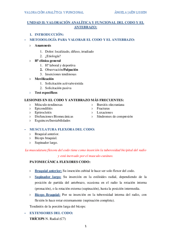 He publicado nuevos apuntes de 2º Valoración Analítica y Funcional en Fisioterapia: Valoracion-Unidad II.-Codo.pdf