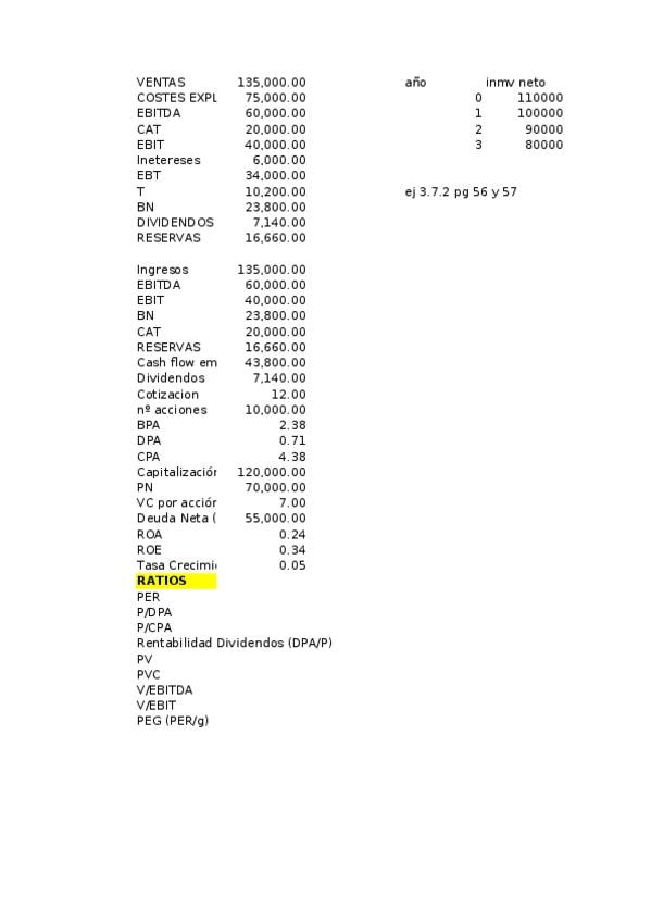 He publicado nuevos ejercicios de 3º Valoración de Empresas: CASO 7.5.3
