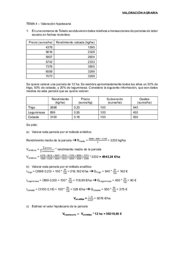 Ejercicio 7 del tema 8 de Valoración de Empresas Agrarias hecho en clase con Silverio