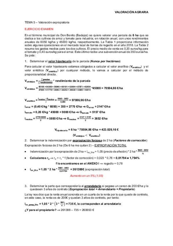 Ejercicio tema 5 valoración hipotecaria y expropiatoria resuelto con colores. Don Benito. Cayó uno así en el examen,