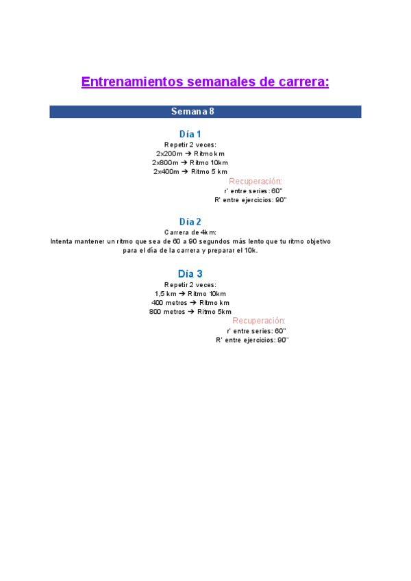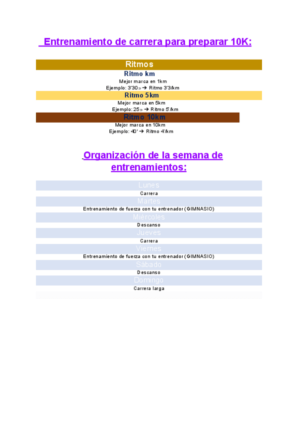 Este es un documento en el que se expone un entrenamiento para una carrera de 10 km. Trabajo de la asignatura Valoración de la condición física.