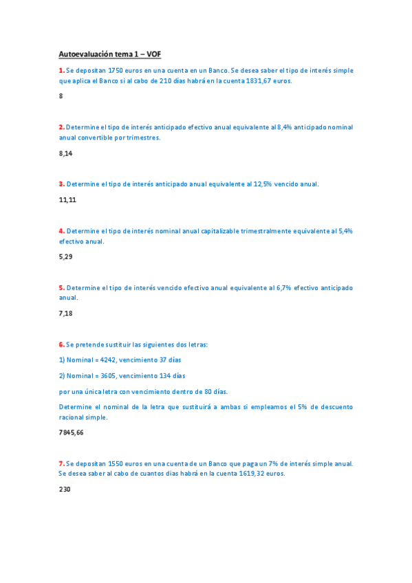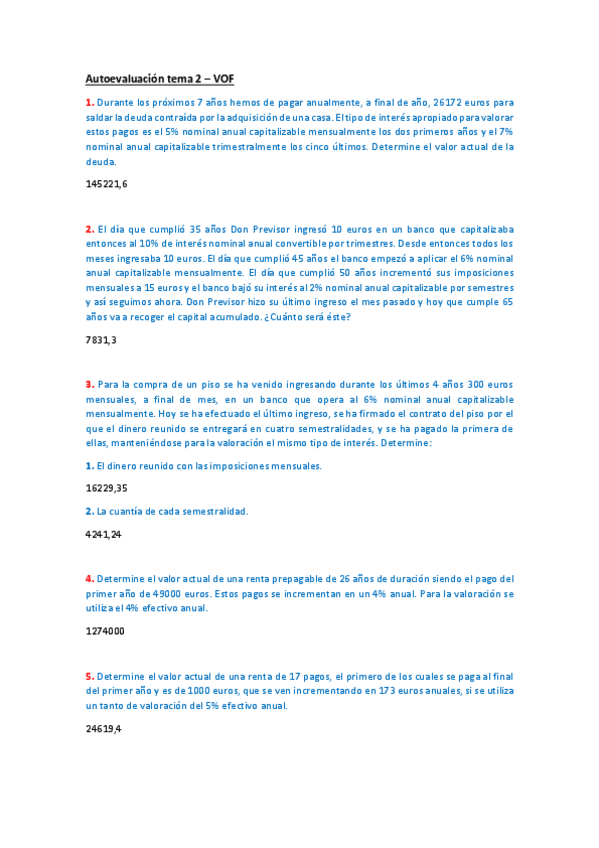 He publicado nuevos ejercicios de 2º Valoración de Operaciones Financieras: AUTOEVALUACIONES VOF