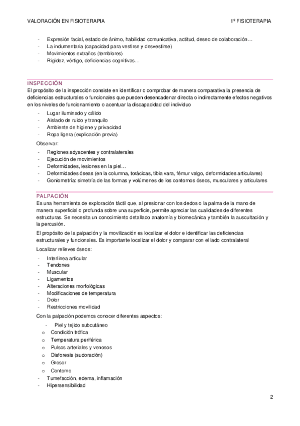apuntes valoración en fisioterapia 2023/2024
