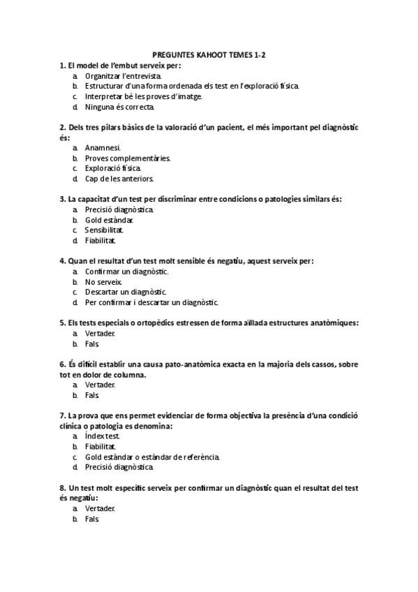 En roig teniu marcades preguntes d'exàmen.