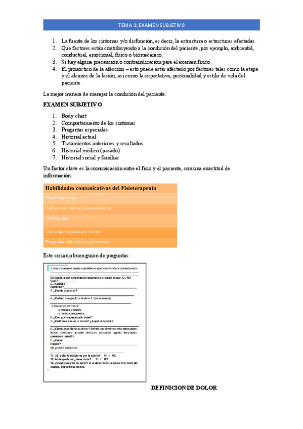 He publicado nuevos apuntes de 1º Valoración en Fisioterapia: TEMA1.ExamenSubjetivo.pdf
