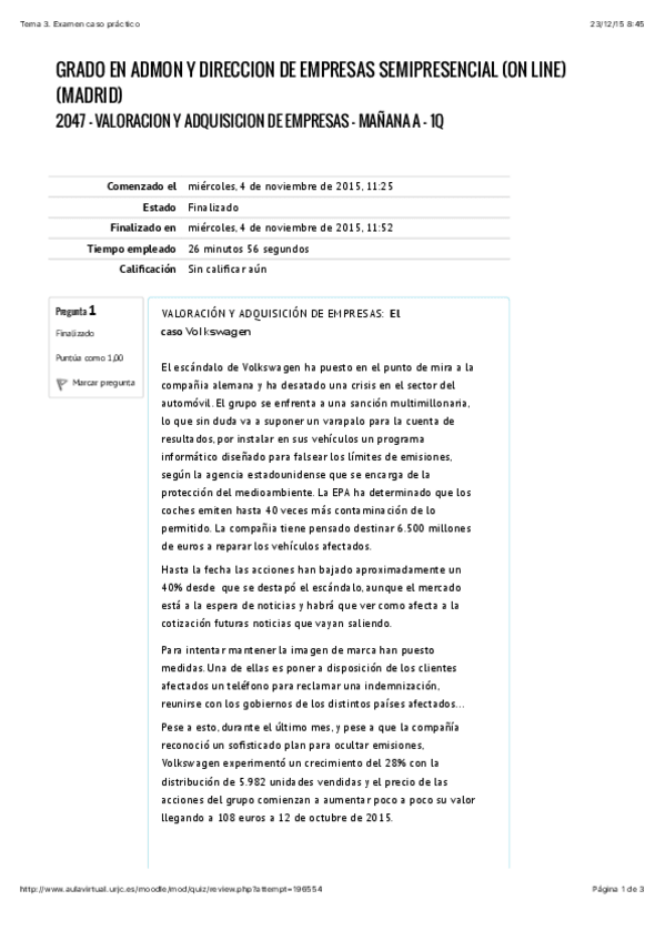 He publicado nuevos apuntes de 4º Valoración y Adquisición de Empresas: Examenes