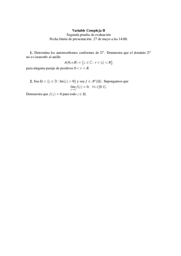 He publicado nuevos examenes de 4º Variable Compleja II: Prueba II 2020 resuelta