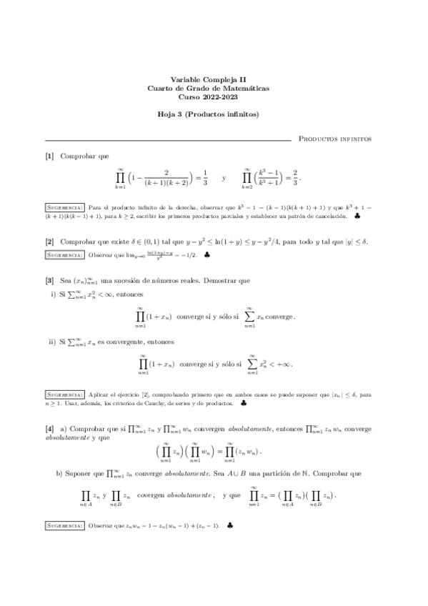 He publicado nuevos ejercicios de 4º Variable Compleja II: Hojas Variable Compleja II