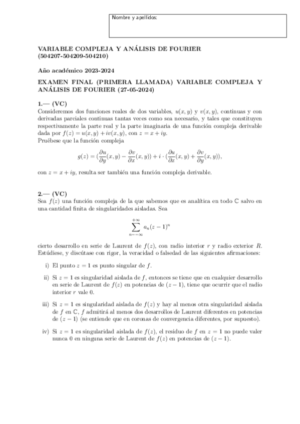 Examenes Variable Compleja y Fourier