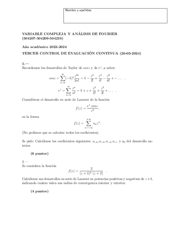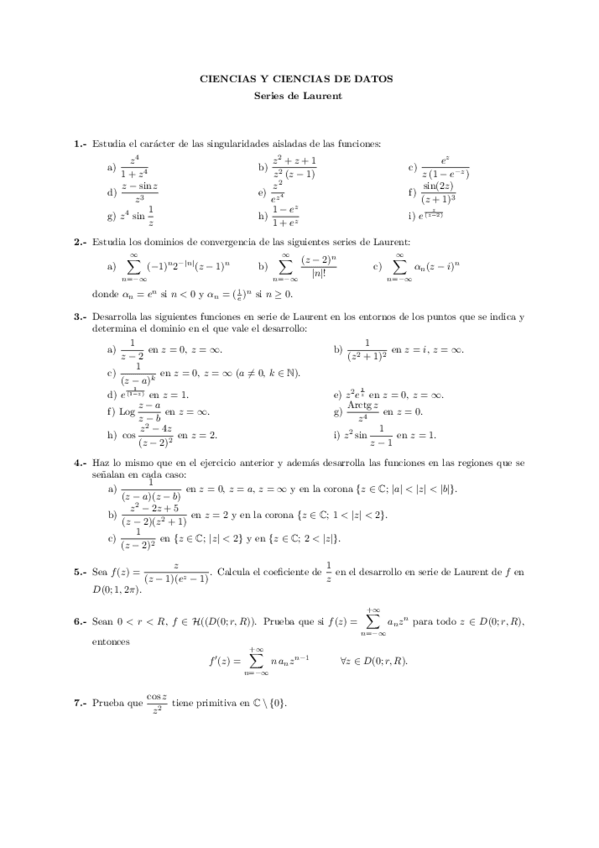 He publicado nuevos apuntes de 2º Variable Compleja y Análisis de Fourier: EjerciciosSerieLaurent.pdf