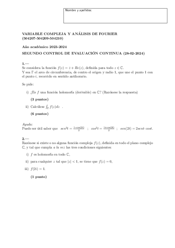 He publicado nuevos examenes de 2º Variable Compleja y Análisis de Fourier: Final2070621watermark.pdf