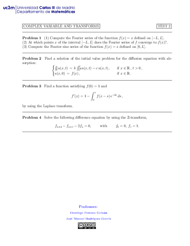 He publicado nuevos examenes de 2º Variable compleja y transformadas: Exámenes 21-22 y de otros cursos