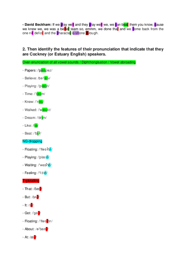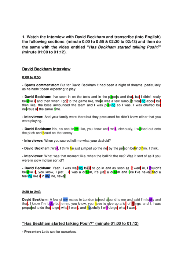 Una de las varias tareas de Levey, esta en concreto, era analizar el acento cockney de alguien, yo escogí a Beckham