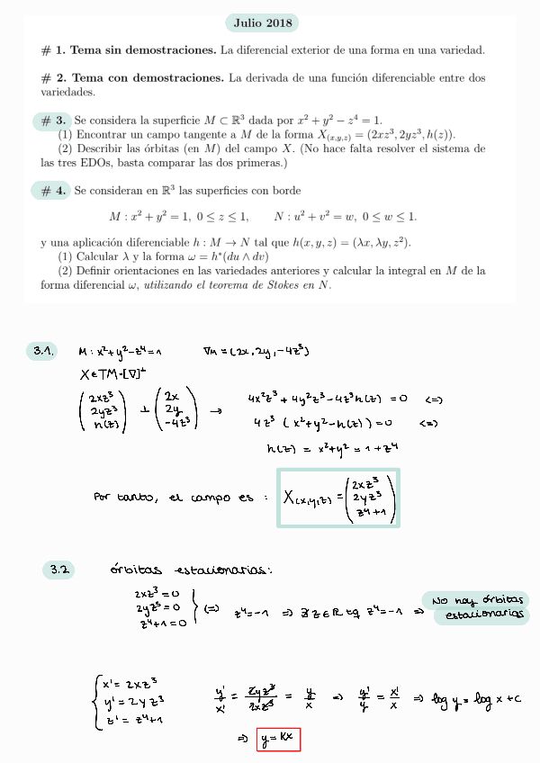 He publicado nuevos examenes de 4º Variedades Diferenciables : Exámenes con solución