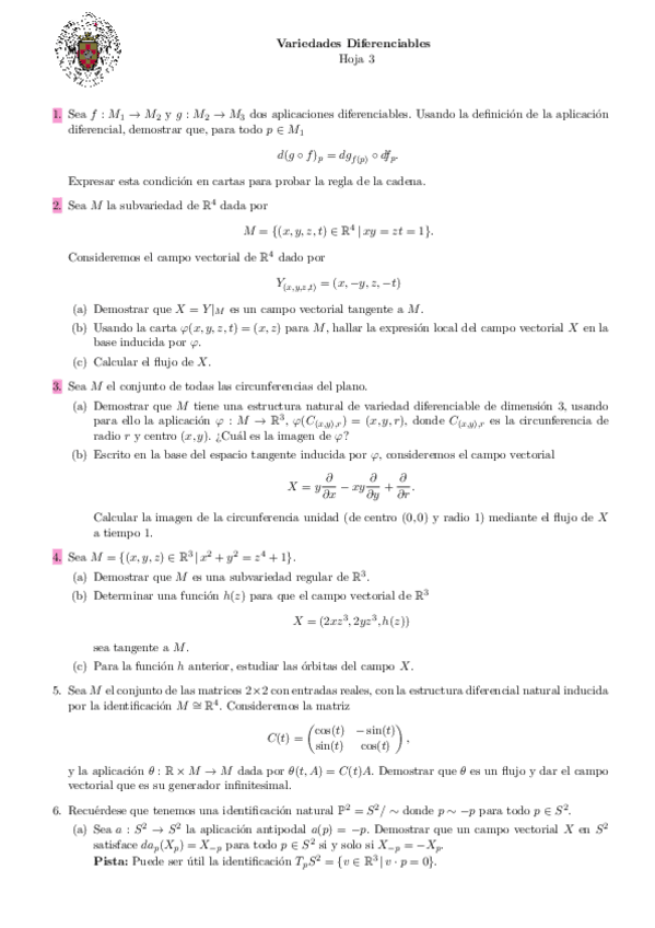 He publicado nuevos ejercicios de 4º Variedades Diferenciables : ejercicios-VDIF-hoja-1.pdf