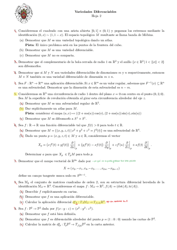 He publicado nuevos apuntes de 4º Variedades Diferenciables : Resúmenes (con Cuestiones) 23/24)