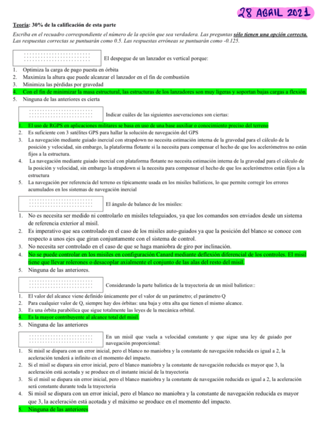 He publicado nuevos examenes de 4º Vehículos Aeroespaciales: Recopilatorio-TEST-Teoria-Misiles-CTA.pdf