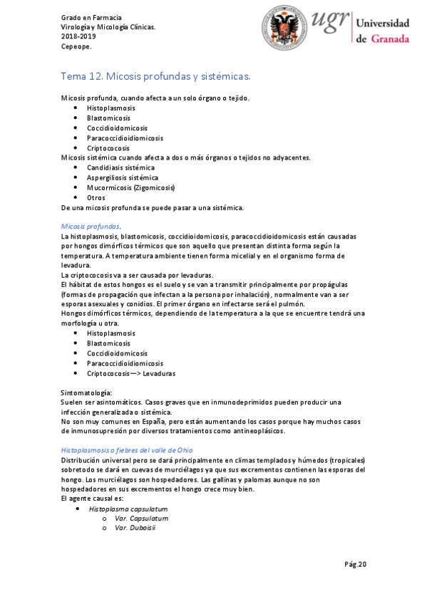 He publicado nuevos apuntes de 4º Virología y Micología Clínicas: MICOLOGIA-CRISTINA.pdf