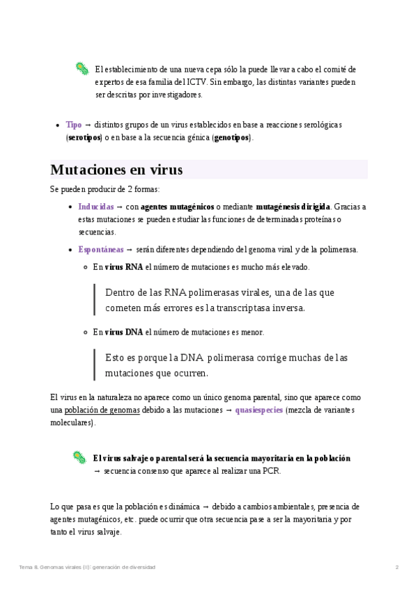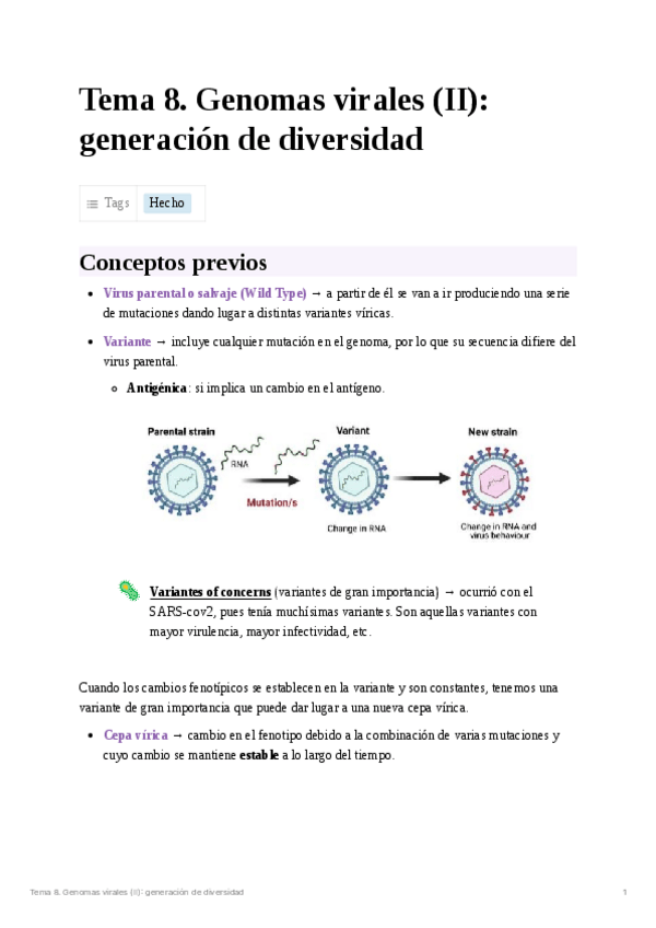 He publicado nuevos apuntes de 4º Virología: Tema 8. Genomas virales (II): Generación de diversidad.pdf