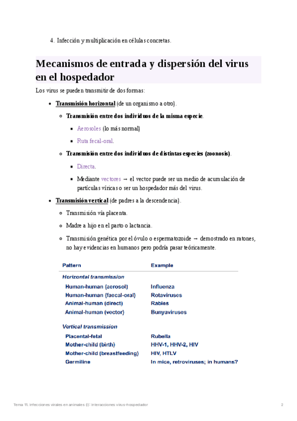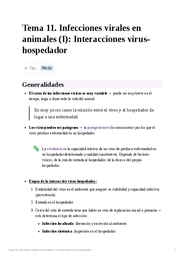 He publicado nuevos apuntes de 4º Virología: Tema 11. Infecciones virales en animales (I): Interacciones virus-hospedador.pdf