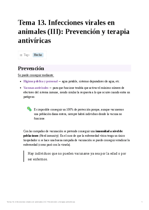 He publicado nuevos apuntes de 4º Virología: Tema 13. Infecciones virales en animales (III): Prevención y terapias antivíricas.pdf