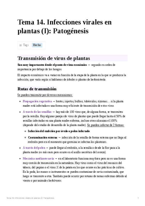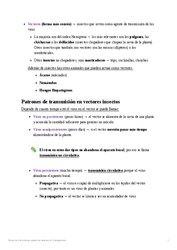 He publicado nuevos apuntes de 4º Virología: Tema 14. Infecciones virales en plantas: Patogénesis.pdf