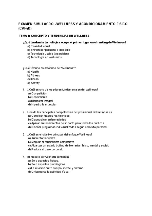 EXÁMEN WELLNESS ALGUNAS PREGUNTAS