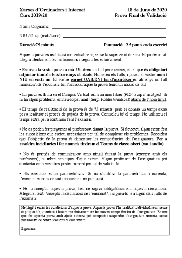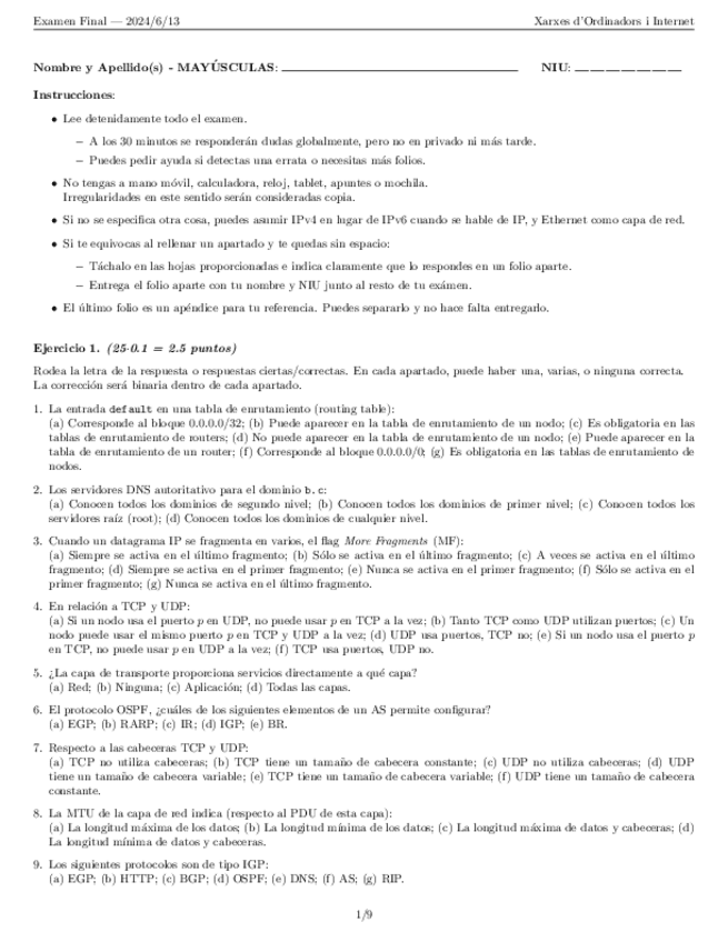 He publicado nuevos examenes de 1º Xarxes d’Ordinadors i Internet: ExamenFinal-2021 SOL.pdf