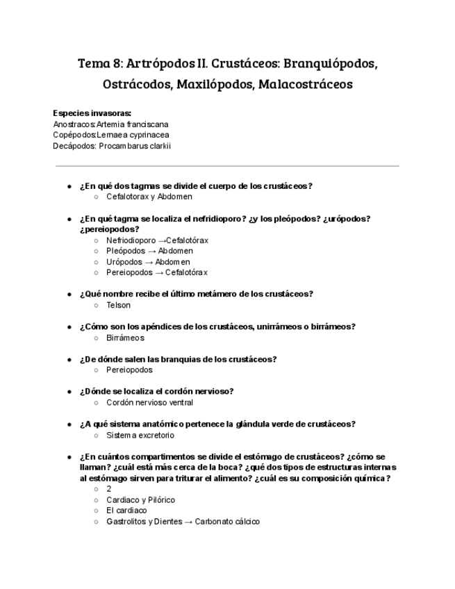 He publicado nuevos apuntes de 1º Zoología: Tema-8-Crustaceos-Artropodos-II.pdf