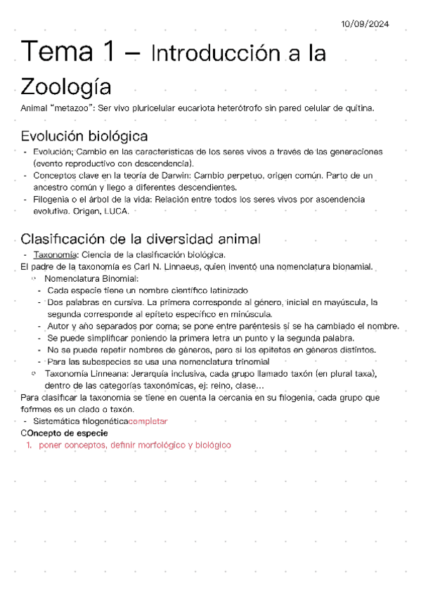 He publicado nuevos apuntes de 1º Zoología: Zoología