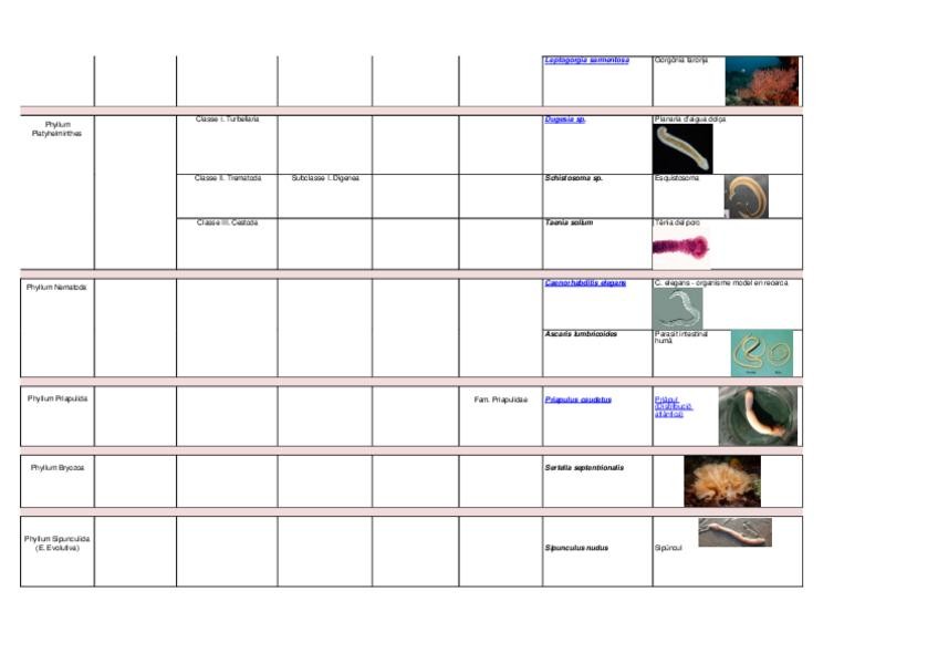 Un poco de características, tablas de clasificación de cada grupo (Briozoos, Foronídeos y Braquiópodos (articulados e inarticulados)) y una tabla al final con la comparación entre los 3 grupos <3