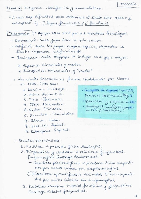 Apuntes zoología Tema 2: filogenia, clasificación y nomenclatura.
