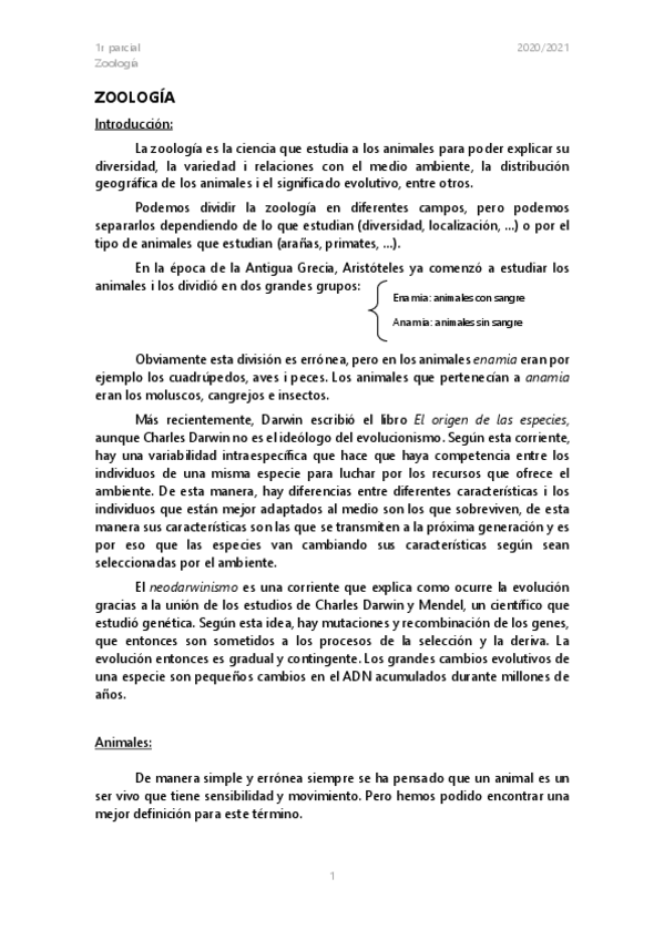 Apuntes 1r parcial zoología