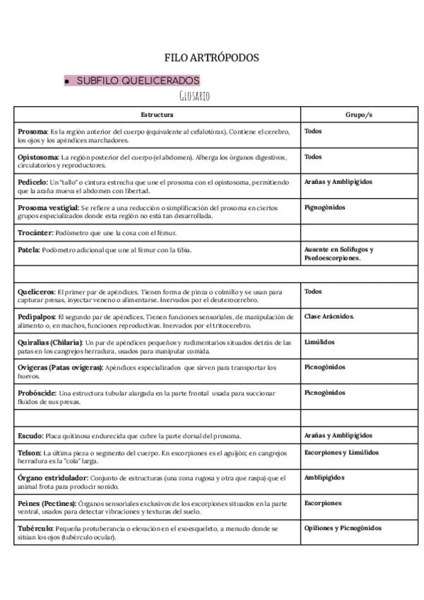 TODO ARTRÓPODOS (práctica (de los grupos del glosario no os fieis mucho, en las definiciones si) + teoría esquematizada)
