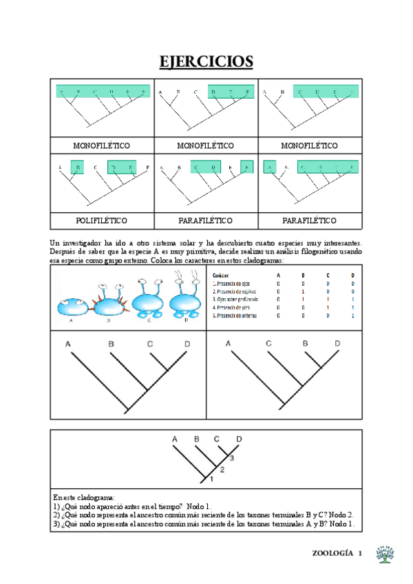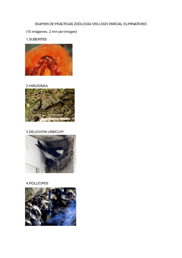 EXAMEN parcial eliminatorio de practicas de zoo. Visu. Taxonomía