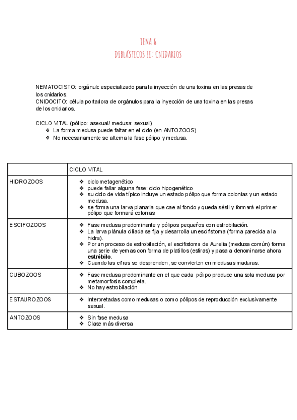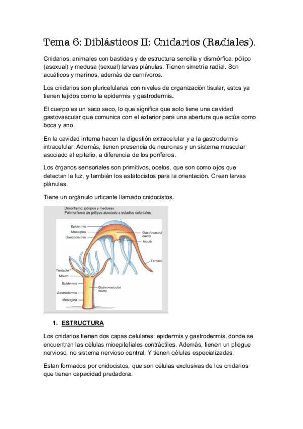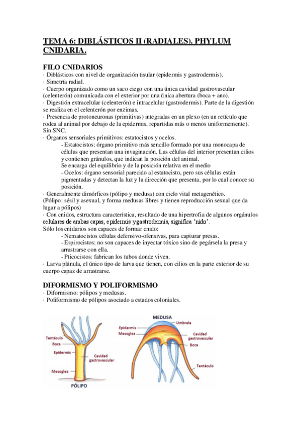He publicado nuevos apuntes de 1º Zoología: Tema 6 Diblásticos. Phylum cnidaria-convertido.pdf