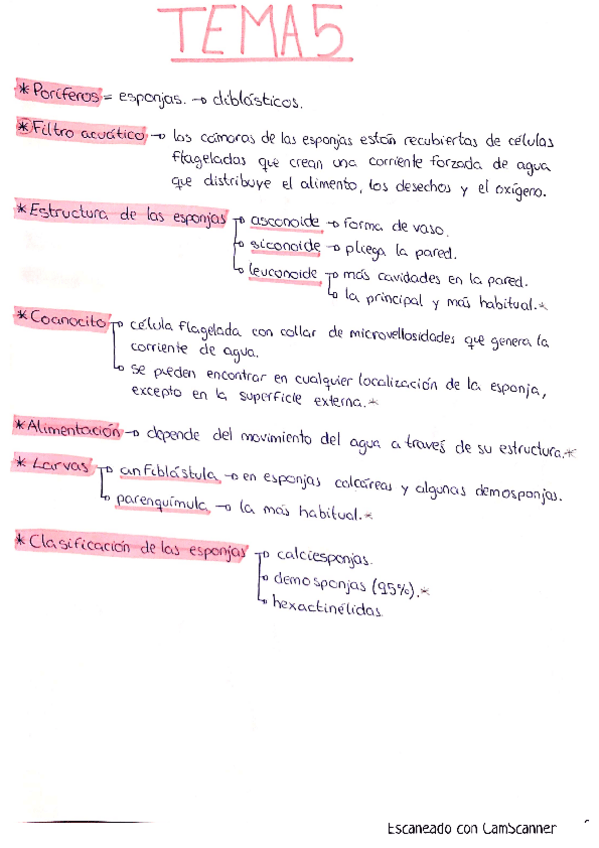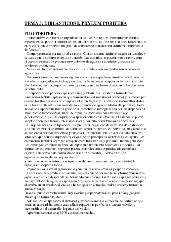 He publicado nuevos apuntes de 1º Zoología: Tema 5 Diblásticos. Phylum porifera-convertido.pdf