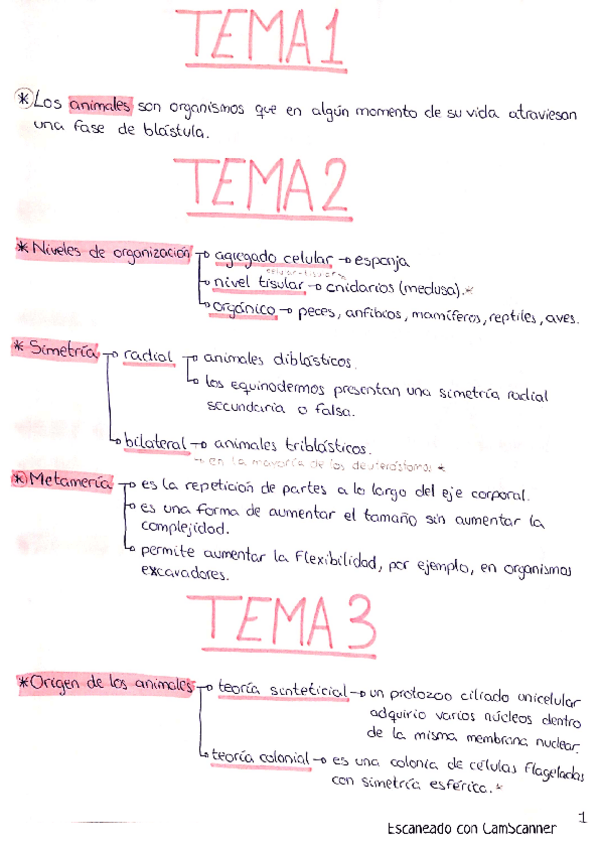He publicado nuevos apuntes de 1º Zoología: Esquemas teoría apuntes