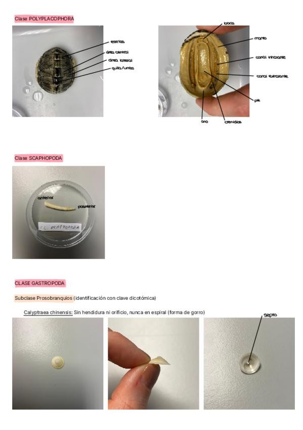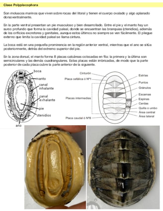 Imágenes y teoría de la práctica 3 de zoología II, moluscos II. Imágenes con explicación de estructuras y teoría, acompañada de la descripción presente en las claves dicotómicas. Good