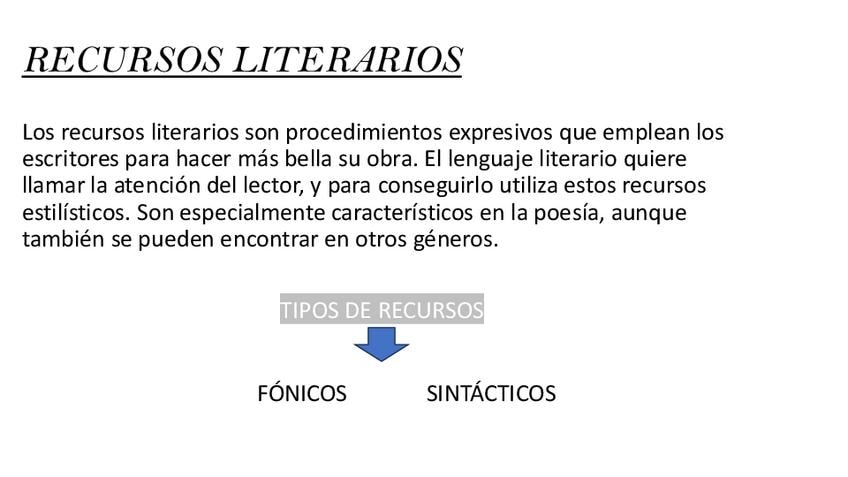 Apuntes de Lengua Castellana y Literatura (Recursos Literarios) para 1ro de E.S.O