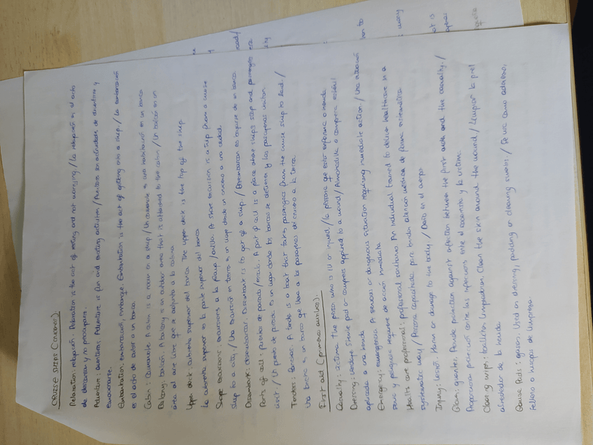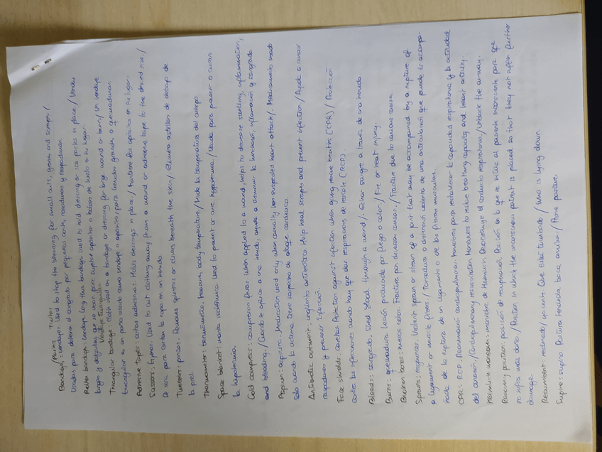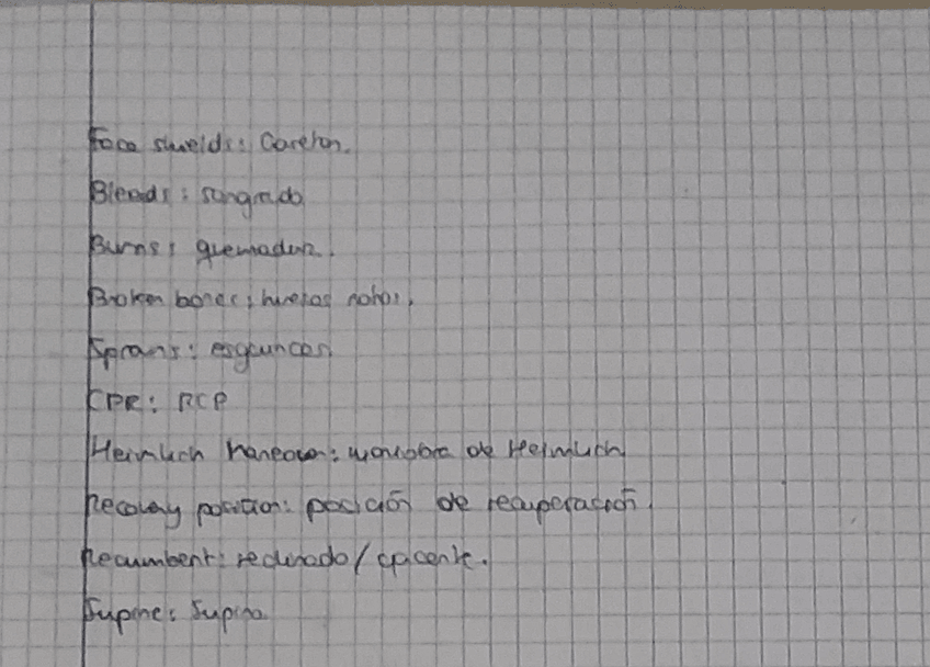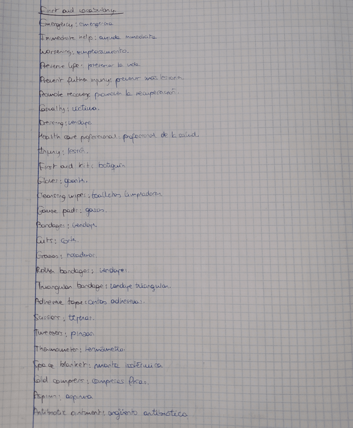Vocabulario primeros auxilios