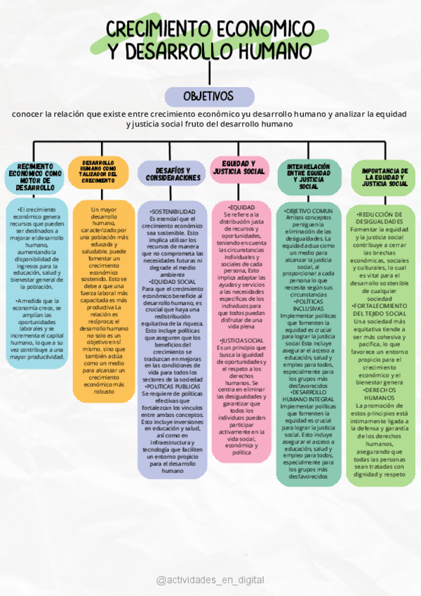 MAPA CONCEPTUAL*CRECIMIENTO ECONÓMICO Y DESARROLLO HUMANO*OBJETIVOS*RECIMIENTO ECONÓMICO COMO MOTOR DE DESARROLLO*DESARROLLO HUMANO COMO TALIZADOR DEL CRECIMIENTO*DESAFÍOS Y CONSIDERACIONES*EQUIDAD Y JUSTICIA SOCIAL