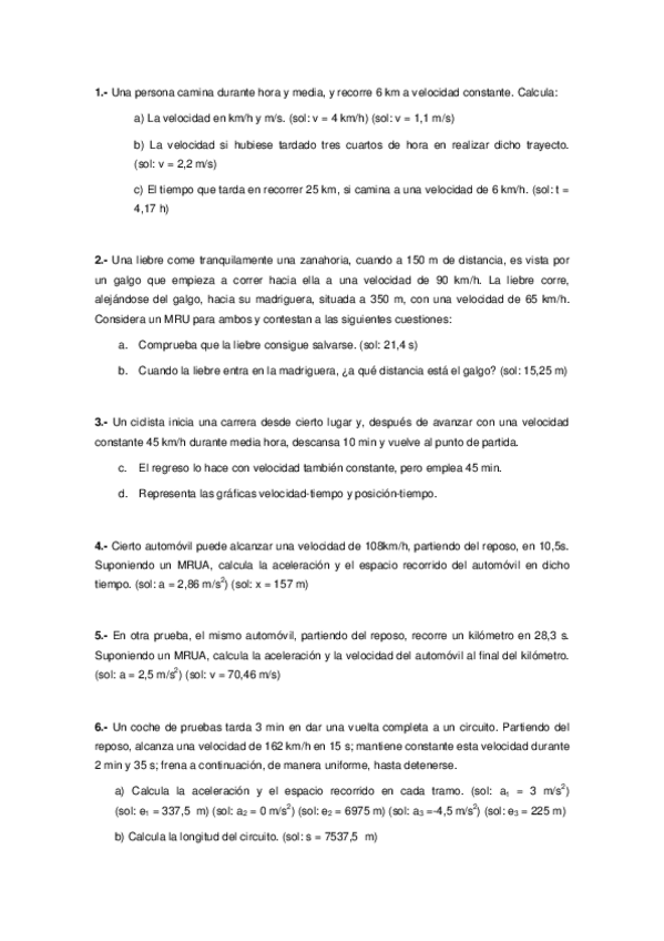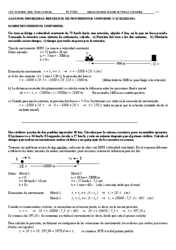 He publicado nuevos apuntes de 4º Física y Química: ejercicios repaso cinemática
