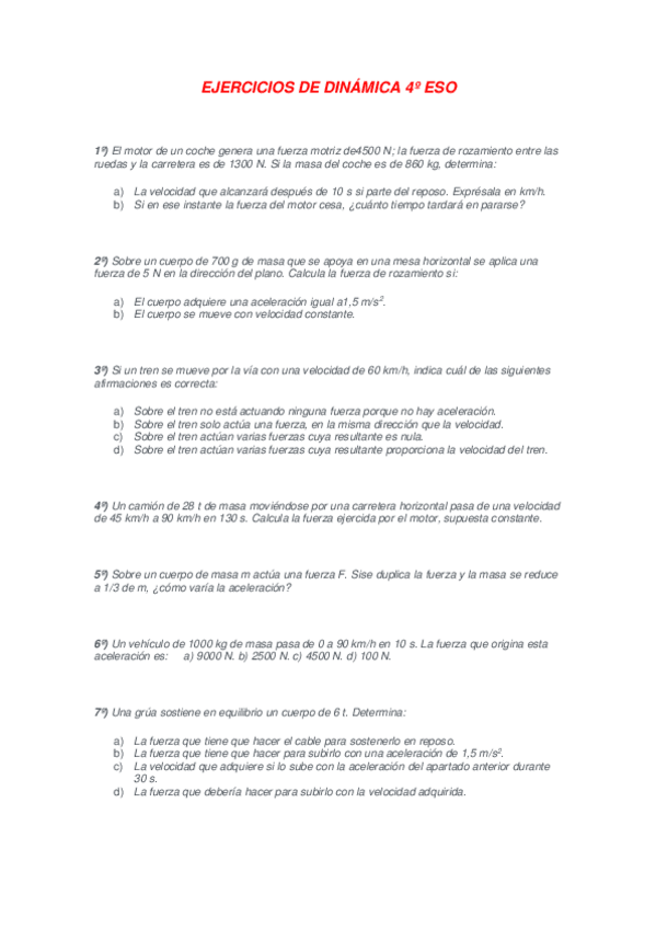 He publicado nuevos apuntes de 4º Física y Química: ejercicios repaso dinámica