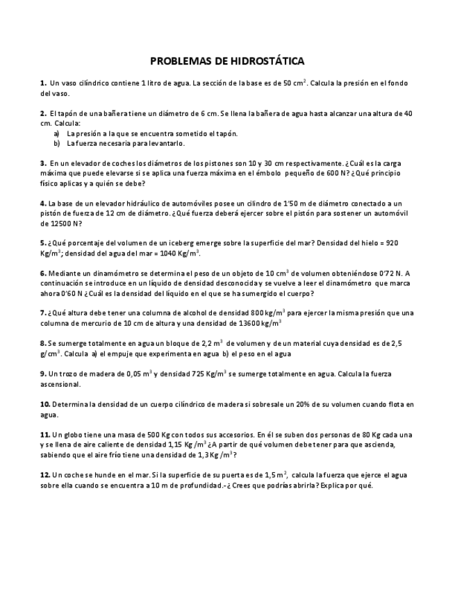 ejercicios repaso hidroestática