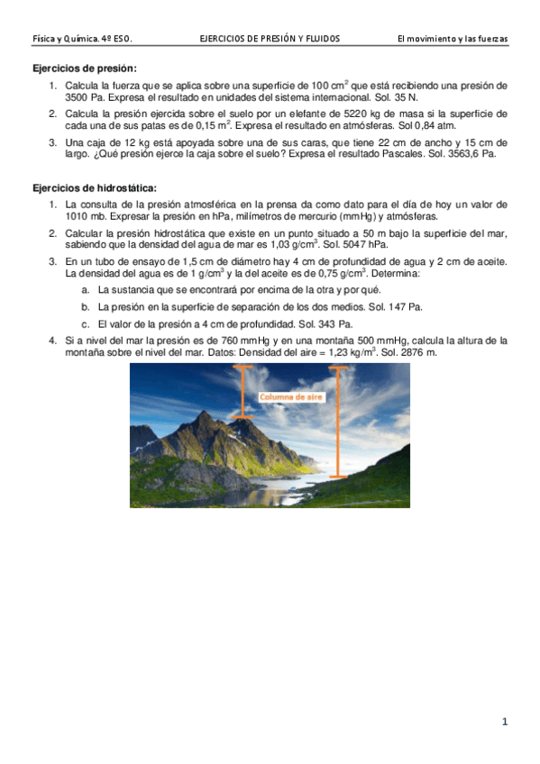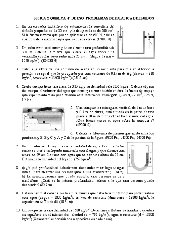 He publicado nuevos apuntes de 4º Física y Química: ejercicios repaso hidroestática