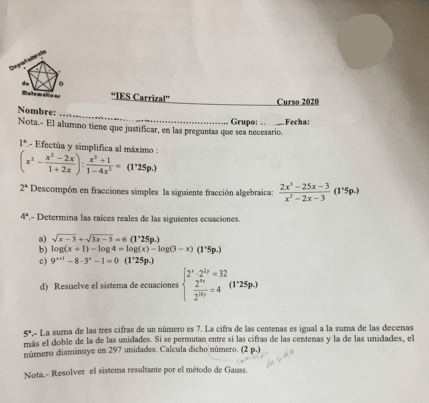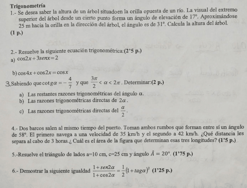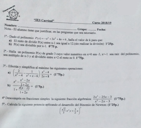Exámenes de matemáticas de 1º Bach